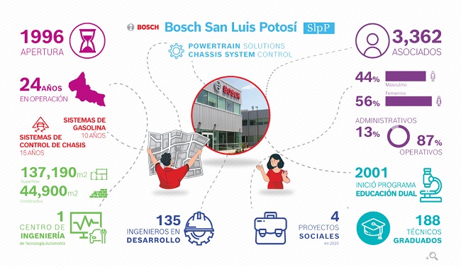 Informó el vicepresidente comercial, Günter Daut, durante una conferencia de prensa vía virtual, en la que dio a conocer que dos de cada mil personas empleadas en el sector manufacturero, trabajan en alguna de las 12 plantas de Bosch en México, siendo la planta de San Luis Potosí concentra 20% de los asociados Bosch.