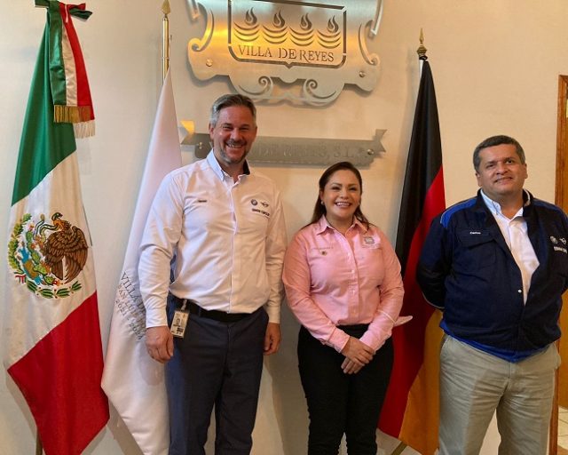 La presidenta municipal de Villa de Reyes, Érika Briones Pérez recibió al presidente CEO de BMW Group planta San Luis Potosí, Harald Gottsche y al director de Relaciones Gubernamentales, Carlos Gutiérrez, con quienes se plantearon diversos proyectos de responsabilidad social en educación y deporte, como parte de las acciones de bien común en favor de los habitantes.