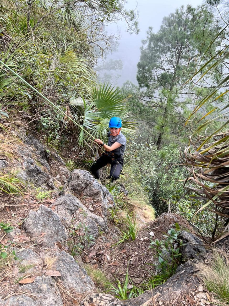Detalló que el recorrido se realizó a través de la “Vía Ferrata”, ruta que incluye etapa de senderismo en el espectacular Bosque de Niebla, y escalada sobre riscos en la etapa final a la cumbre con longitud de 40 metros. La ruta, que incluye varias horas de recorrido, ofrece la oportunidad de disfrutar de paisajes espectaculares, la belleza del Bosque y la vista desde una de las principales cumbres de las Huastecas de México.