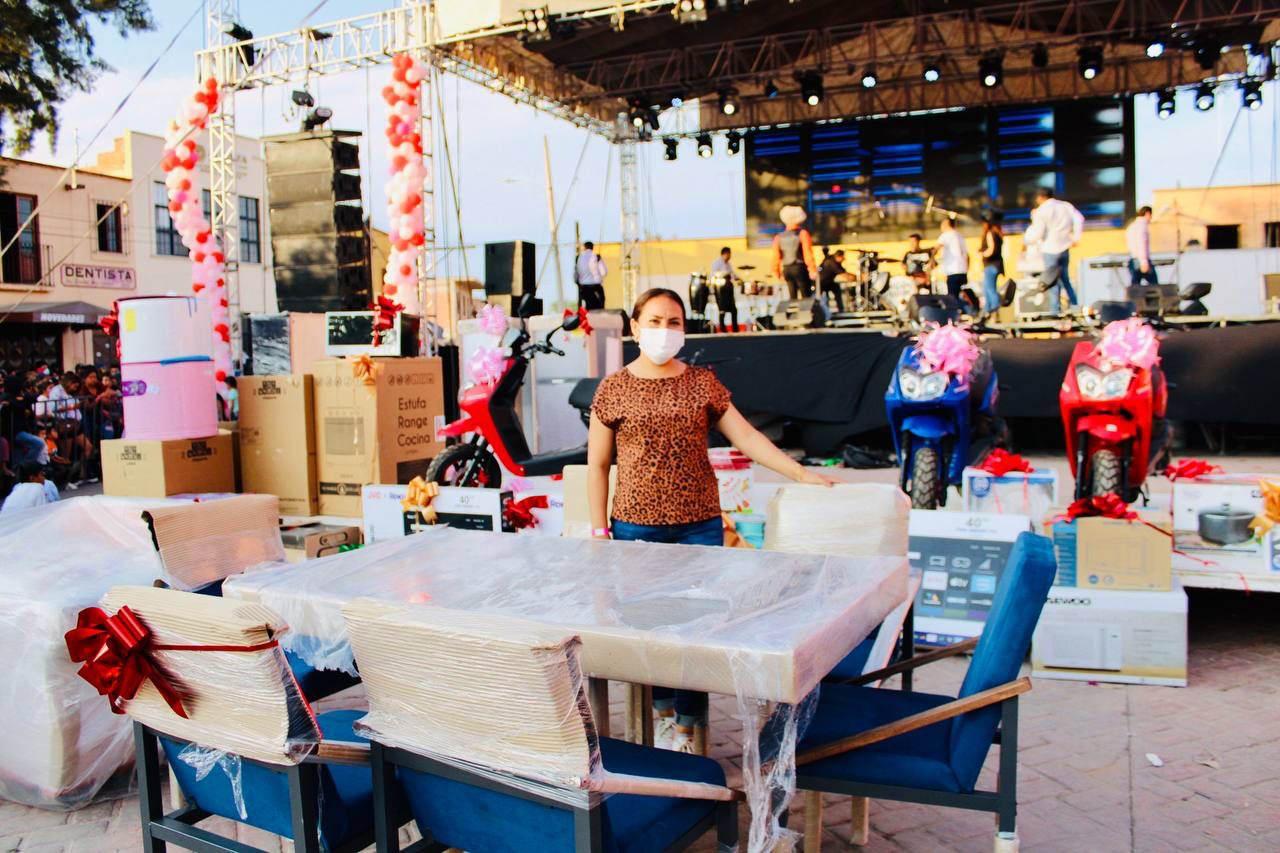 El evento inició con la rifa de los regalos como: salas, comedores, refrigeradores, estufas, lavadoras, y cinco motonetas que fueron los premios especiales.