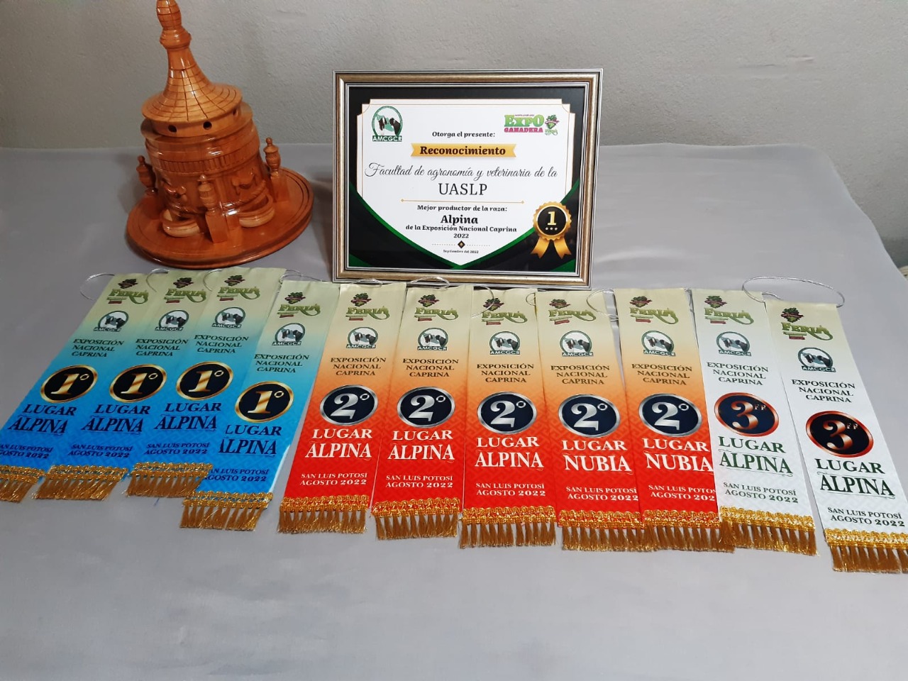 Resultando acreedora la UASLP a un reconocimiento especial por parte de la Asociación Mexicana de Criadores de Ganado Caprino de Registro y la Feria Nacional Potosina, como Mejor productor de la raza Alpina en la edición 2022, lo cual habla bien del trabajo realizado en el “Rancho Las Delicias” perteneciente a la Facultad de Agronomía y Veterinaria.