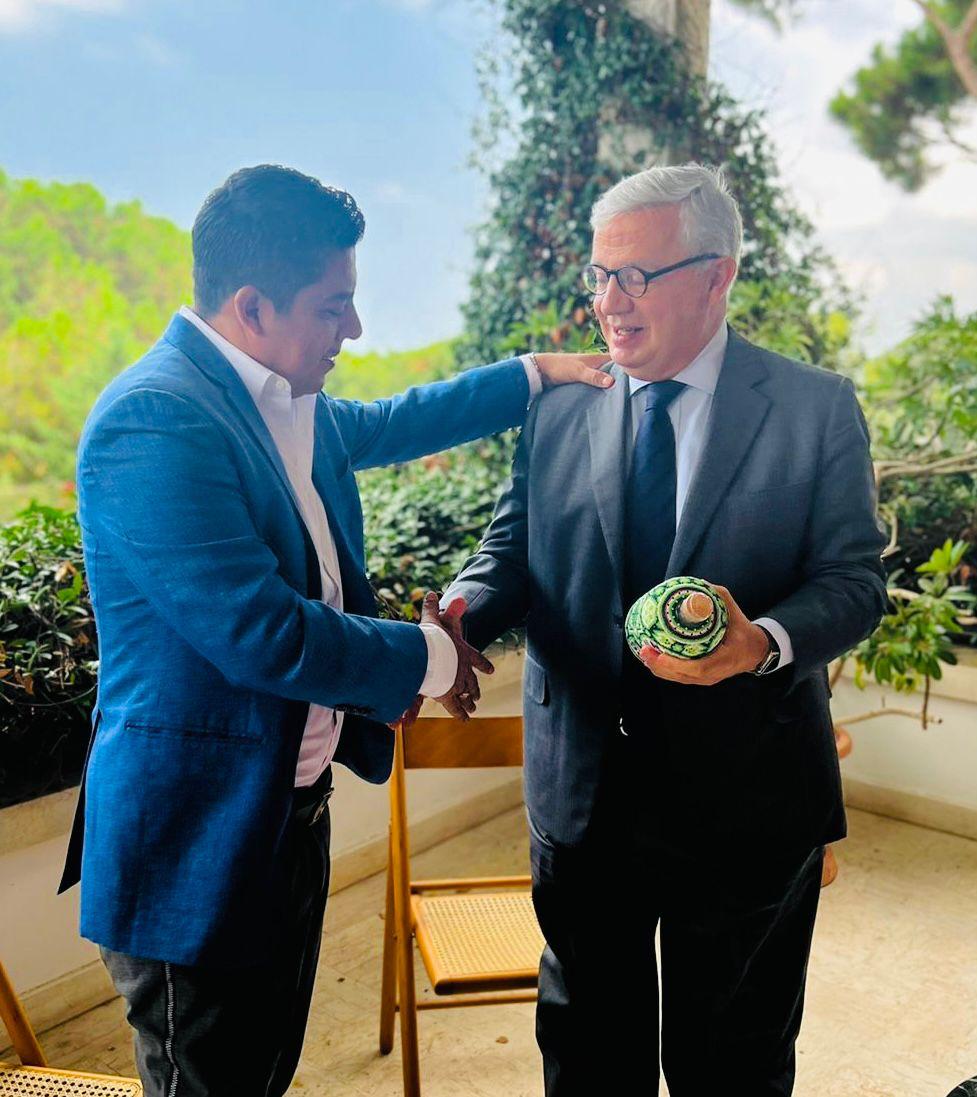 Adicionalmente, sostuvo una reunión con Gebran Gerge Bassil, quien se perfila como el nuevo Presidente de Líbano, con quien compartió los resultados de esta gira de trabajo y quien mostró un gran interés por San Luis Potosí, al conocer por parte del Gobernador Ricardo Gallado, el avance económico y social que la entidad ha experimentado en el primer año de administración y las ventajas competitivas para favorecer la inversión de capitales, ya sea en el plano industrial o turístico por lo que el balance es muy positivo en este primer acercamiento.