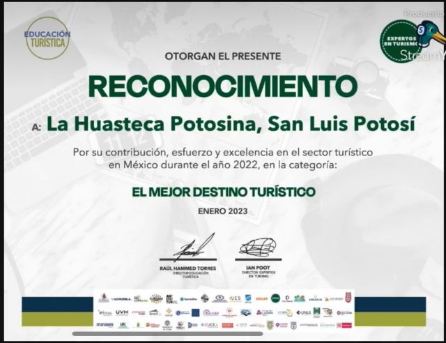 Resultado del esfuerzo, trabajo y dedicación del Gobierno del cambio que encabeza Ricardo Gallardo Cardona en materia turística, la agrupación denominada “Expertos en Turismo” del Estado de Jalisco, reconoció a la Huasteca potosina como el “Mejor Destino Turístico de México”, derivado de una convocatoria llevada a cabo a nivel nacional, donde la gente daba su opinión sobre lo vivido en su reciente periodo vacacional.