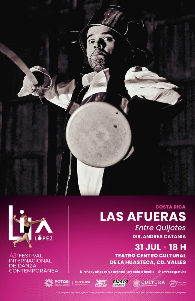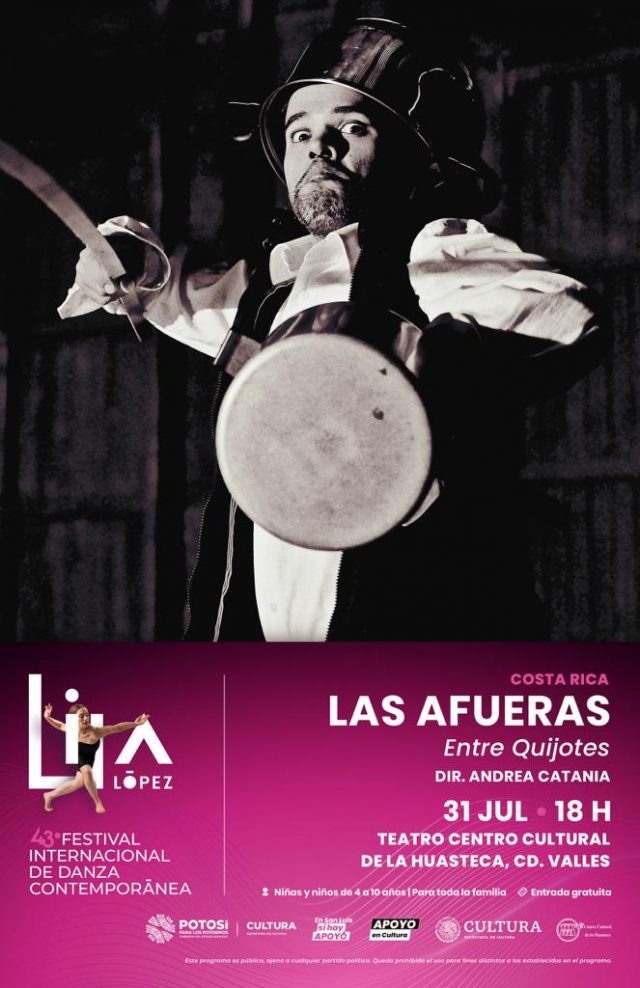 Como una demostración más que en el Gobierno Estatal que encabeza Ricardo Gallardo Cardona sí hay apoyo a la difusión artística, la Secretaría de Cultura del Estado de San Luis Potosí lleva el Festival Internacional de Danza Contemporánea “Lila López” en su edición 43 al Teatro Fernando Domínguez del Centro Cultural de la Huasteca Potosina, con la presentación de la obra “Entre Quijotes” de la compañía “Las afueras” de Costa Rica, el lunes 31 de julio a las 18:00 h, entrada libre.