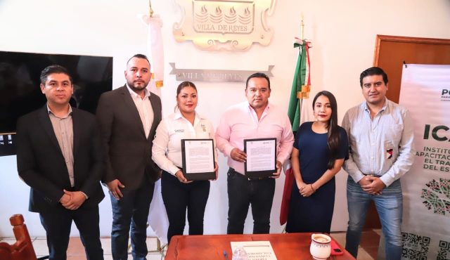 El presidente municipal de Villa de Reyes, Daniel Lagunas López firmó un convenio de colaboración con la directora del Instituto de Capacitación para el Trabajo del Estado de San Luis Potosí, Rosa Estefanía Flores Saldierna, con el fin de capacitar a las y los villarreyenses en oficios que representen una oportunidad de crecimiento y empleo, para fortalecer su preparación y accedan a mejores oportunidades laborales.
