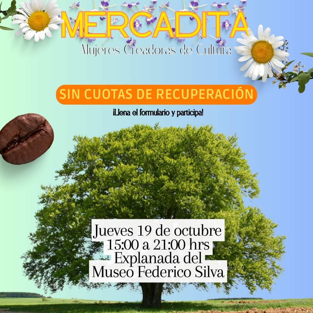 Buscamos a mujeres artesanas o artistas que quieran participar en una mercadita este jueves 19 de octubre en la explanada del Museo Federico Silva. A partir de las 15:00 hrs ♥️