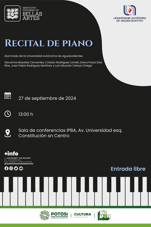 Nos vemos en el recital de piano presentado por el alumnado de la Universidad Autónoma de Aguascalientes.